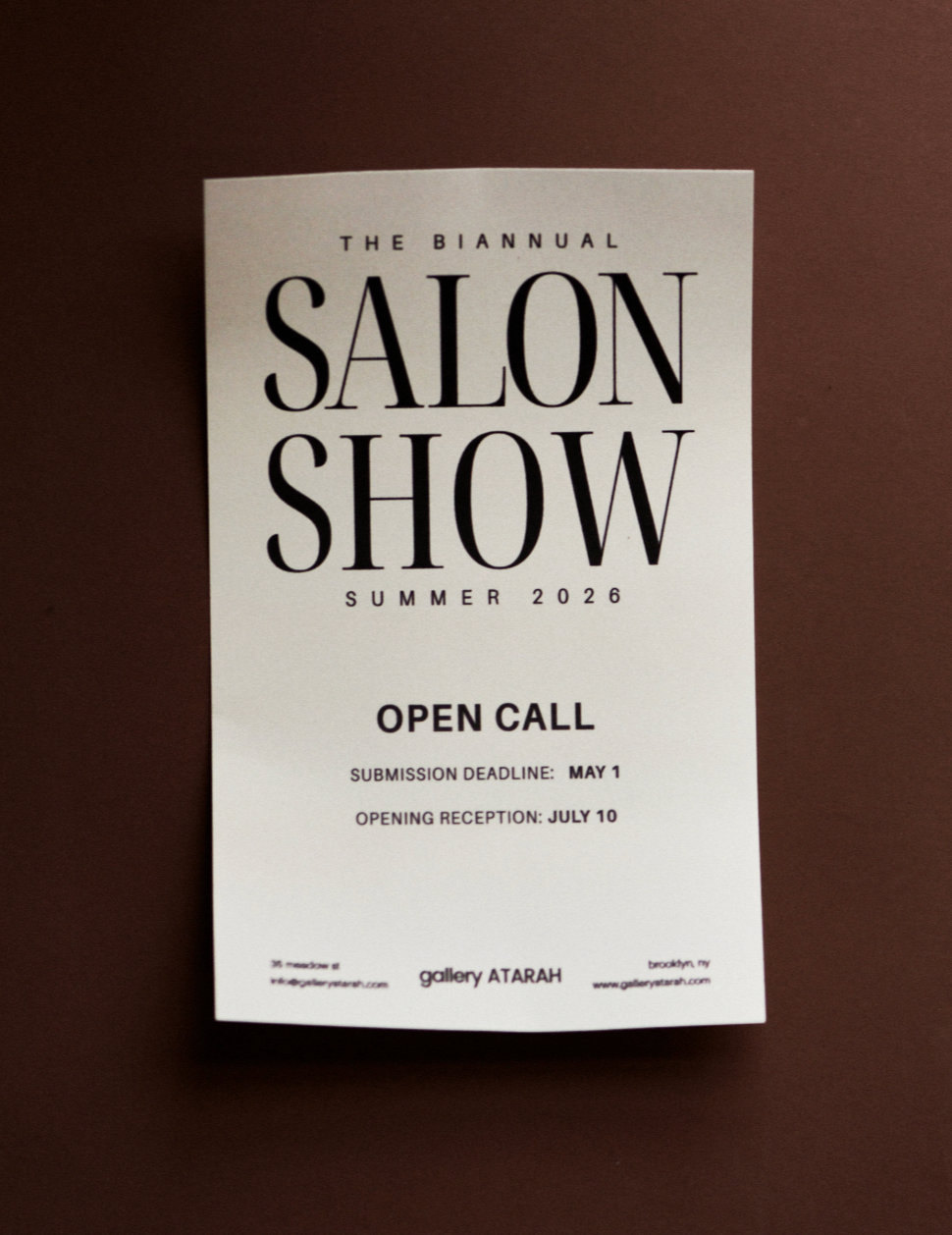 No predetermined theme - Atarah curates based on what's submitted, available space, and how works interact with each other