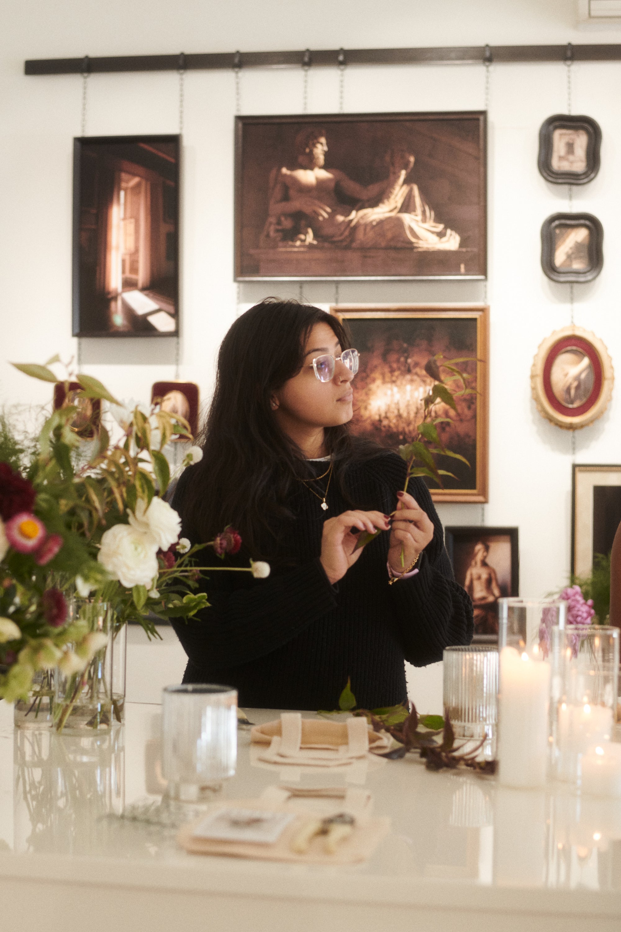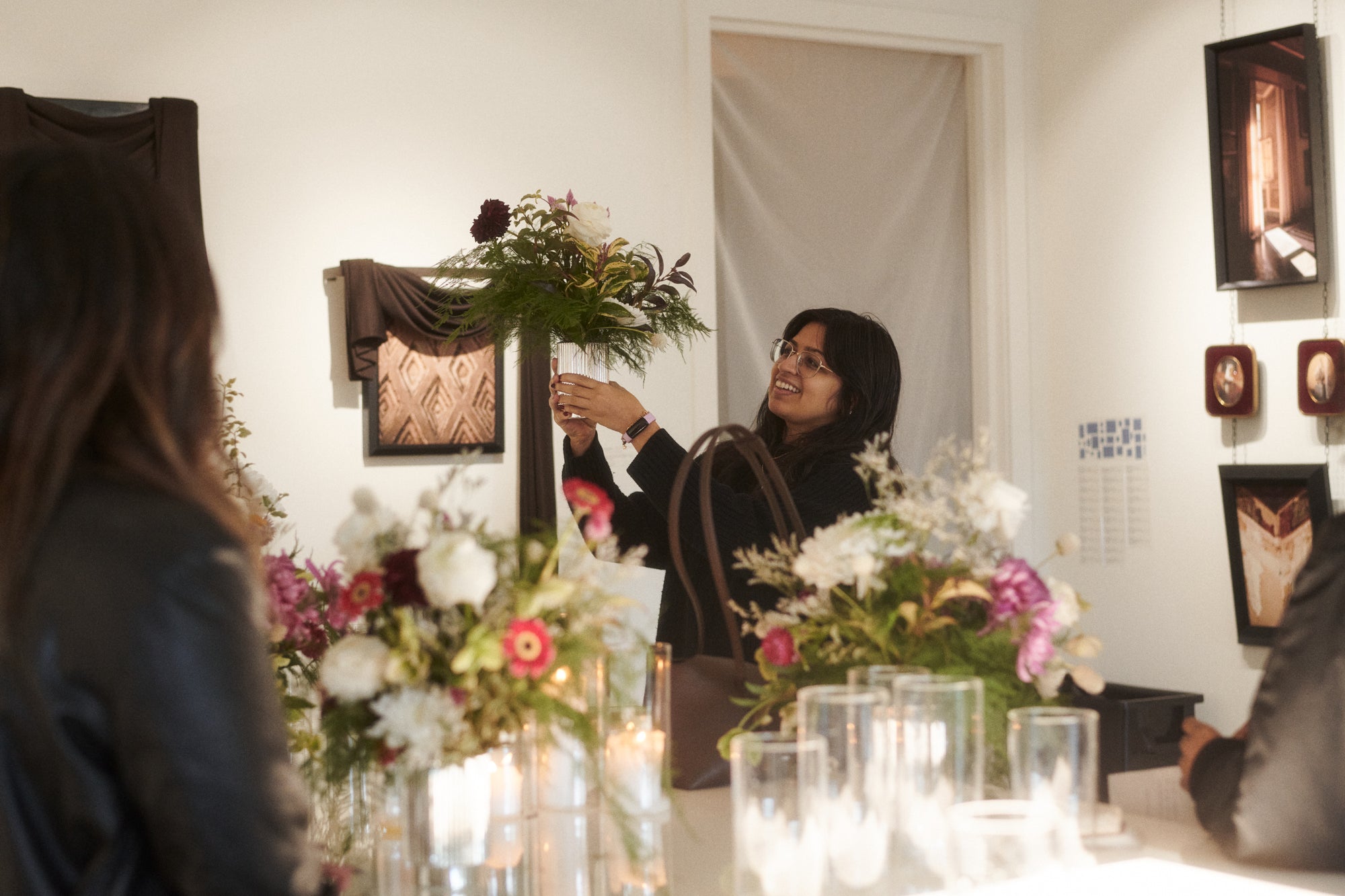 Tawhida Rahman is a floral designer based in Queens, New York, whose practice explores the intersection of memory, identity, and natural beauty. Anar Studios—named after anar, the Bengali word for pomegranate, a jeweled fruit that symbolizes sentimentality, abundance, and raw beauty— approaches floral design as a form of storytelling, building dreamlike worlds that invite viewers into moments of thought provoking discovery. Her work draws from her own life experiences as well as her interest in art history and the world’s biodiversity. Exploring themes like family history, grief, transitions, and cultural heritage, she uses raw material to create works that feel suspended between reality and dream.
